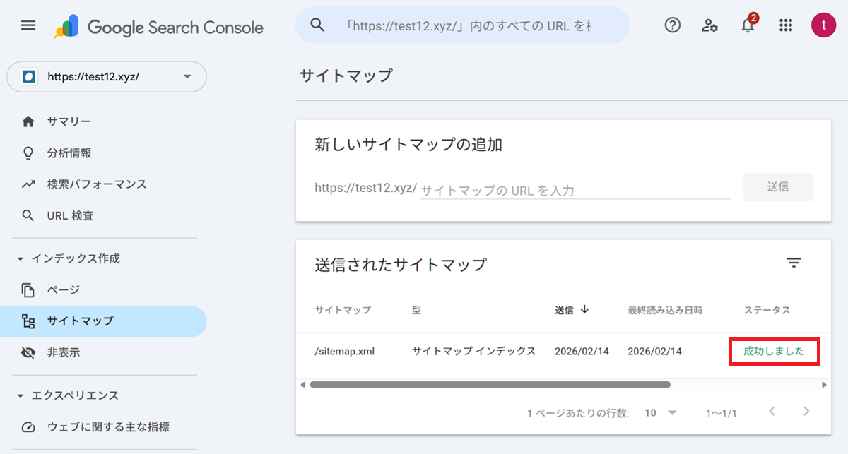 ② 「ブログのURL」 をクリック(例:https://test12.xyz)