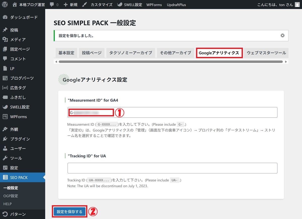 Googleアナリティクスの測定ID(G-XXX…)を入力